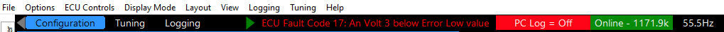 The Event Log menu provides a constantly updated record of fault codes and other events as they occur. The Event Log pop out menu is located down the left hand side of the screen, click the 'Event Log' tab or press 'E' to pop this menu out and press 'Esc' to close it. This menu can also be found under the 'View' tab at the top of the screen.